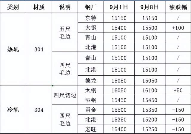 鋼廠盤價(jià)方面:東特304熱軋下跌50元,316L熱軋平盤;張浦所有資源繼續(xù)平盤。
