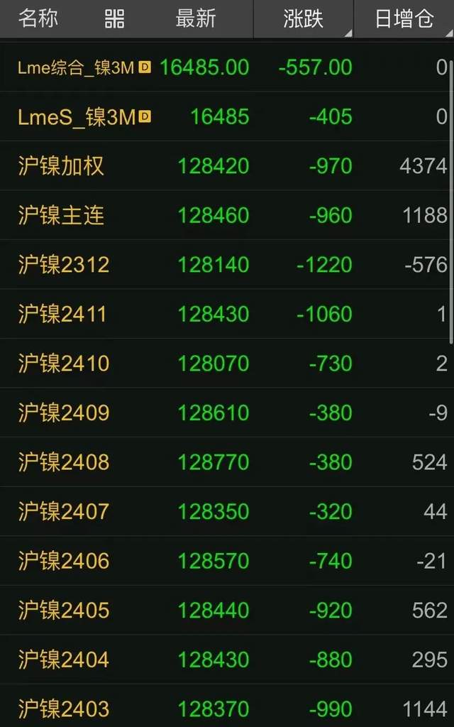 鎳價期貨方面:倫鎳下跌500多美元;滬鎳最高下跌1000多元;不銹鋼期貨個別合約最高下跌200多元。